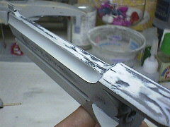 パテが乾いたらペーパーで削ってきれいにしていきます。とにかく盛っては削るの繰り返し。我慢の作業が続きます。