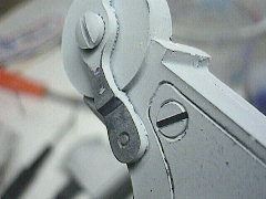 デザインナイフで不要な部分を削りとります。ペーパーをかけてきれいにしたところで、ネジのモールドを彫り込んで完了です。