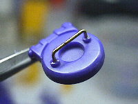 真鍮線は0.5mmを使っています。ハンドルの付け根を残して切り飛ばし、ピンバイスで穴を開けて真鍮線を挿しています。