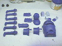 下塗りしたパーツに本塗装を施しました。光武はメタリックっぽいのですが、フラットパープルで塗装しています。ツヤツヤの紫って趣味悪いってカンジ〜ですもんね(^^;