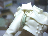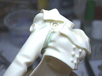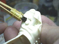 右腕の付け根に若干の隙間ができてしまうのでポリパテで埋めることにしました。接着してからだと塗装のときに困るので外れるようにします。