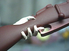 ライフルを持つ手の指の間を筆塗りでリタッチしています。ちょっと色のツヤが違いますね。目立ちすぎです(;;)