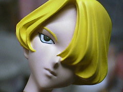 目の塗装は睫毛から描いていきます・色はサンダーバーズのブルーです。マリアは目尻にバリバリ睫毛がちょっとあるので、筆先でちょいちょいと追加しています。