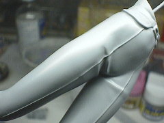 脚(ズボン)は白なので、サンダーバーズのホワイトを塗っています。塗装してもパーツの合わせ目はわかりませんね。よかったです。
