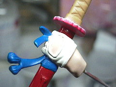 鞘に巻いた紐は、インディブルーを筆塗りしました。もう少し紺に近い色がよかったかもしれませんね(^^;
