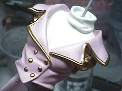 顔の仕上げとして、エナメル塗料のピンクで口のモールドにスミ入れします。