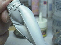 足を接着し、継ぎ目を瞬着パテで埋めていきます。瞬着パテは数分で固まるパテで、堅すぎず崩れずと結構便利なパテです。