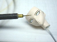 目線に注意して、マホガニーで瞳を描いています。流し目の場合、左右で微妙に瞳の位置を変えるのがポイントです。