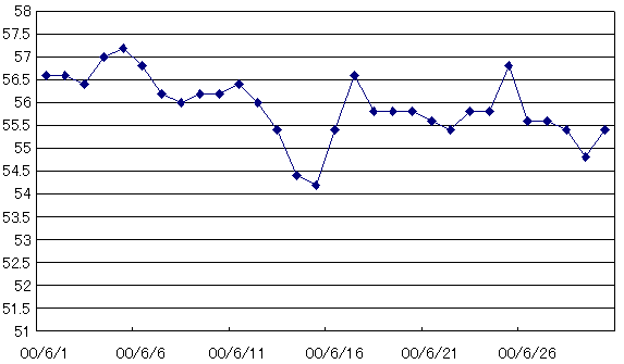 土日にしっかり食べたせいか、2日連続で57kg台。ダイエット生活に復帰したばかりというのにヘコむなあ。そこであわてて本日は緊急ステッパー大会を開催。参加者1名。「渡る世間は鬼ばかり(再放送)」を見ながら30分、「スマスマ」を見ながら40分の、2本勝負!この成果が出る日はくるのでしょうか・・・。