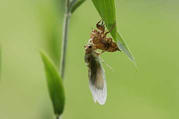 帰り道、畑の途中でヒグラシの羽化に出くわす。ラッキー。
