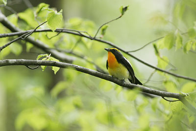 遊歩道にそってアオジが50m間隔くらいで並んでさえずっている。念願のコルリの撮影に成功。きれいなキビタキの雄が3羽でなわばり争い。ニュウナイスズメが巣材を運んでいる。マヒワの群れと一緒にイスカのペアが。アカゲラはこちらの存在を気にせず餌探し。あちこちにクマゲラの食痕が。