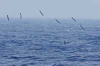 定刻どおり帰りの船が迎えに来た。往きほど混雑していなかった。我々はシート席の予約がとれていたのでゆっくり乗船。荷物を置いてカメラと三脚を持ってデッキへ。 出航後すぐにオオミズナギドリが飛びはじめる。船の前方から離れていく方向に飛ぶのでなかなか近くを通らない。たまに気まぐれなやつが近くを通過する。 暗くなってきて部屋に戻りシートに座ると同時に熟睡。眼がさめた時はレインボーブリッジを通過していた。下船後はゆっくりしていられない。大急ぎで東京駅へ向かい、軽く夕食を済ませ夜行バスに乗った。この時間からでは新幹線では帰れないのだ。