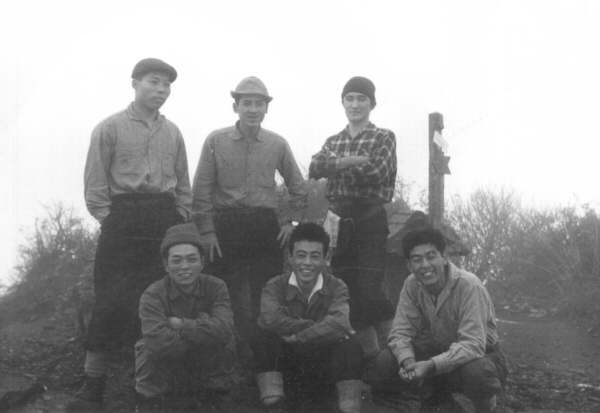 (写真本人前列中央、前列右端鶴田清二会員(20期)、後列右端石崎史朗会員(23期))