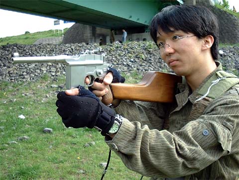 最近流行のやふ〜お〜くしょんにて購入したモーゼルミリタリー@ガスガン。どこのメーカのだか聞くの忘れちゃった。随分前から菊池君は欲しがっていたので、大喜び。