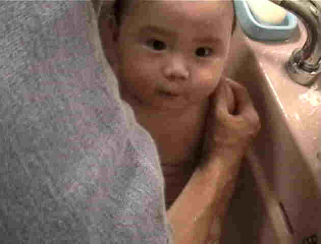 洗面台で、朝シャンならぬお風呂でゴキゲンです。