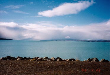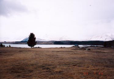 Lake Takepoから南へ30km程度走るとまた別な人造湖があり、この方向にMt.Cookが見える...はずだったんだけど。