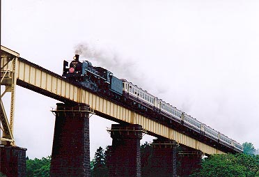 C57-180牽引の「ばんえつ物語号」です。 山都駅を発車した直後、このような鉄橋を超えます。 これを真横または正面から狙えると最高ですね。 |