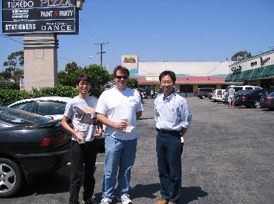 ここもLA駐在時によく食べてた、タコス屋。とくに、シイラのフライとキャベツなどが入ったフィッシュタコがじつに美味くて安い。よく 世話になりましたね。(いつも同じものを頼むんで、顔を見ただけで店員にオーダーを当てられたこともありました) 一緒に写っているのは、LA駐在時の職場の友人のみなさん。 |