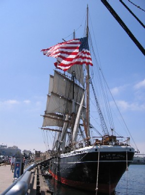 Star of India @ Maritime Museum of San Diego 2004-08-28 ティファナに行く途中にサンディエゴによりました。これは、立ち寄った休憩ポイントの前にあった帆船。 ・1863年、イギリス・マン島製の鋼鉄帆船で、当時の名前はEuterpe。 なんてこったい、中までじっくり見てくればよかった。 |