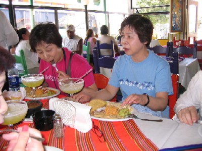 マルガリータとメキシコ料理で昼食中の一枚。ここにはタクシーで直接来ましたが、運転手は無愛想な上に、余計にふんだくろうとした り...(国境地帯からティファナまでは、当時の規則で米5ドルと決まっているそうですが、7ドルよこせといいやがった...油断も隙もありゃしない)。 その辺の情報も、観光案内所で仕入れておくべきでしょうね。 ちなみにこの店。案内所から推薦(?)されただけあって、なかなか美味かったですぞ。 |