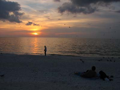 Sunset at Marco Island Beach 2004-12-05 こちらは、今夜泊まる宿の前にある、ビーチからの一枚。夕日の一枚ですね。 |