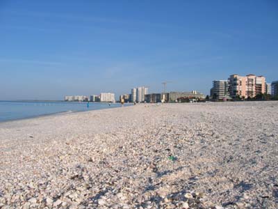Marco Island Beach 2004-12-06 これはその翌朝の一枚。海岸沿いにはいくつものホテルが立ち並んでいますが、少々時期ハズレだったのか、非常に静かな朝でした。 ここの砂は貝殻の破片で出来ており(それが本来の姿かどうかはともかく)、素足で歩くと非常に痛かった。 |