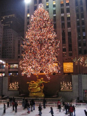 Christmas Tree at Rockefeller Center 2004-12-26 ロックフェラーセンターにある、大きなクリスマスツリーです。その土台部分には夜22時だってのにスケートリンクで皆楽しそうに滑っております。ここには写っておりませんが、この周回する大勢の人の中央で、一人ヘンに踊っているおっさんがいましたぞ。 |