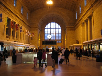 | Union Station トロント中央駅とでも言いましょうか。いろいろな方向へ列車が発着します。 今は知りませんが、当時はNY市からここまでやってくる特急列車もあったはずですね。たしかナイアガラの街で国境を超えるという話でした。 |
