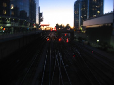 駅から日没を眺めてみました。ちょうど電車が来ればよかったんですが、タイミングが悪かった。 |