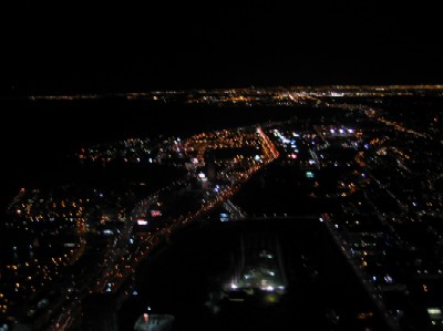 タワー頂上から見た、ナイアガラ方向の夜景。やっぱり都会の夜景は綺麗ですなぁ。 で、この後このライトの道を3時間かけて家まで戻りましたわ。 |