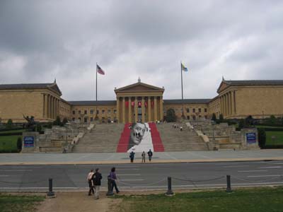 Philadelphia Museum of Art 2005-04-23 この時はダリの特別展ということで、アプローチ部分にはダリの顔写真が描かれていました。 ここ、映画ロッキーでスタローンが駆け上がった場所ですわ。駆け上がろうとしましたが、予想以上に人が多かったので、ポーズだけやりました。 |