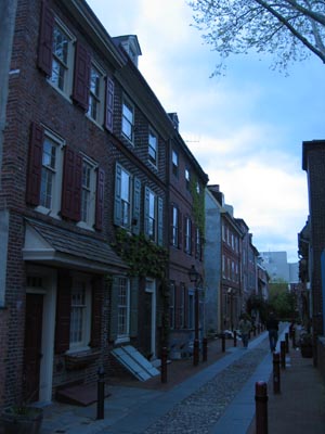 Elfreth's Alley 2005-04-24 18世紀〜19世紀前半に建てられた家が並ぶ。未だに各家に人が住んでいるようですね。 今回は歩いただけですが、一部の家は小さな博物館にもなっているようです。う〜ん、見ておけばよかった。 |