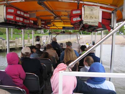 Landing operation 2005-04-25 ポトマック川から陸地に上陸です。(レーガン空港のちょっと北、Parkwayに隣接した公園に上陸しました) 通常の船よりも川の水面までの距離が近く、その意味では迫力があります。たまたま、座った椅子が最後尾で、すぐ下でスクリューがガンガン回って煩かったのもありますが。 |