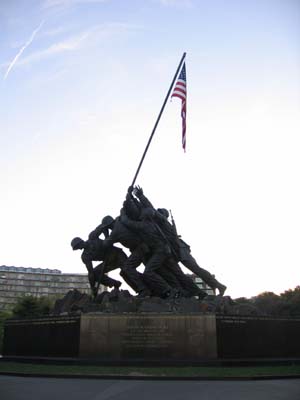 | Iwo Jima Nemorial (Marine Corps War Memorial) 2005-04-25 日本人としちゃ、あまり居心地のいい場所ではないのですが、銅像としてはかなり迫力のあるシロモノです。 ここ、何が不便ってメトロのアーリントン駅から延々とパークウェイ沿いに走るサイクリング道路を歩かされるんですわ。地図を見ると、どうもその隣の駅の方が近いような気がするんだが...。 |
