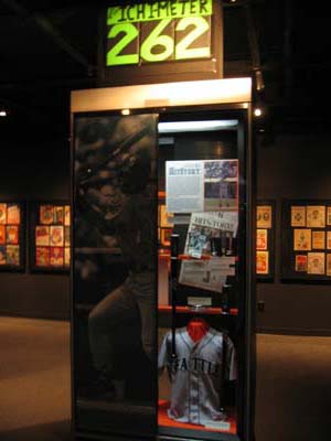 International Baseball Hall of Fame (3) 2005-05-28 こちらはイチロー選手に関する展示。別コーナーで紹介されているのは、日本人ではただ一人でした。 |