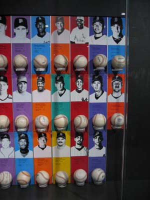International Baseball Hall of Fame (4) 2005-05-28 ノーヒットノーランを記録した選手の一覧。野茂投手のボールも二つ含まれております。 初回は下段、左から三つ目、2回目が上段、右から二つ目です。 |