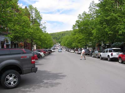 Cooperstown 2005-05-28 Cooperstownの街並み。ここから2〜3ブロックですが、商店や飲食店が立ち並び、中々の賑わいです。野球用品のお店や野球グッズのお店が目立ちますね。 |