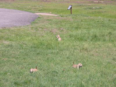 Prairie Dog Town 2005-07-04 ビジターセンターへと向かう途中に、プレーリードッグの住む草原がありました。ここもやっぱり愛嬌を振りまいてました。 |