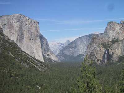 at Tunnel View 左手にあるのがEl Capitan、右の滝がBridalveil Fal