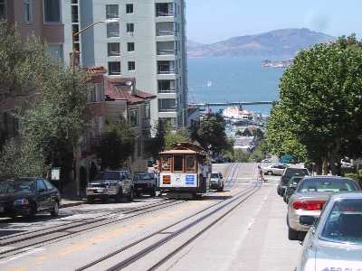 Powell-Hyde Line at Lombird Street 上の写真を撮ってる時にちょうど登ってきました。