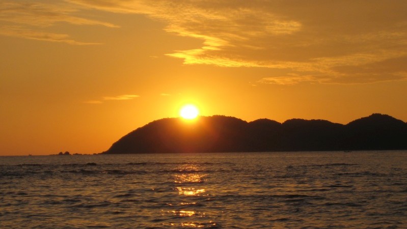茂串海岸沖の小島に沈む夕日です。天草の牛深です。