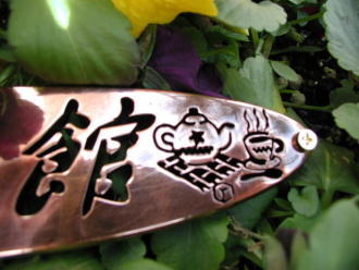 左右に,コーヒーポット、角砂糖、ランチョンマットのデザインをくり抜いてあり、細部にわたって精密に加工されています。