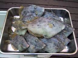 ヒラメをこんなに釣ってバチがあたらない物かと思いながらも、千歳一遇のチャンスとばかりにがんばってしまいました。ヒラメはともかく、一度は食べてみたいと思っていたクロアナゴは骨切りをして湯引きし、酢味噌で食べると絶品。ヒラメに勝るかも?幸せな1日でした。 |