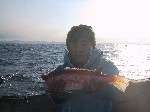 (10数年振りでマコの記録を更新しました) 食いは悪くないのですが何故か小型ばかりでお目当てのデカイシが来ません。同サイズが6枚続いたところで手持ち竿にコツコツと言う小さなアタリが来ました。気持ち送るようにしてから竿を立てると今までとは全くスケールの違う引き込みが襲ってきました。 大久保君がタモですくってくれ取り込むと船底を尾びれで叩き大暴れ、期待はしていなかったのですがデカマコをゲットすることができました。 それまで小型ばかりでモヤモヤしていたのですが、これで一気に気分爽快になり、満足度120%になってしまいました。これを境に潮が流れなくなりアタリも遠くなったので、船長はちょっと早めのアイナメへのチェンジを決断、ポイントの移動となりました。 アイナメも大型を狙ったのですが、高校生サイズ止まり、幼稚園サイズはお帰りいただきましたが十分にオカズなるだけは釣る事ができました。11時過ぎから急に南風が強くなりジエンドとなってしまいました。 |