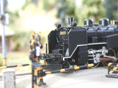 同じく踏み切りを通過するC11をアップで撮ったものです。踏み切りは「素」のままなので、アラが目立ちます。NはHOの様に近くで鑑賞するものではないかもしれません。しかしながら、アリイの蒸機はNで安価な割になかなか良い出来栄えですね。