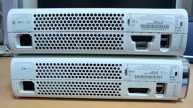 起動後、ゲームを始めると数分で熱暴走する初期ロットXbox360(ノ▽`)。色々ググってみると熱暴走は基盤の反りが原因でCPU,GPUのヒートシンクが浮いてしまう欠陥だとか。いいかげん積んだままの「Forza Motorsport4」を消化したい。でも新品の「Xbox360 S(現行機種)」は厳しい(なにより後継機の噂が聞こえ始めている)。かといって高確率で死亡する初期型を中古で買う度胸は無い。と、日々悶々としていました。そんな時見つけたのが下記のブログ。 ◆Jasper 基板とXenon, Zephyr, Falcon 基板との見分け方 / Xbox360改造日記 初期型Xbox360には「Xenon」,「Zepher」,「Falcon」,「Jasper」なる基盤が存在し、最後のJasperは静穏・省電力化が進んでいるとの事。という事は、Jasper基盤なら熱暴走の怯えず暫く遊べるんじゃないか?と思いネットオークションを覗くと、動作品を謳ったJasper基盤の本体のみの出品を発見。付属品は全て手持ちのXbox360から流用できるので、8英世ぐらいまでなら…と入札。 晴れて7.7英世で落札となりました♪。届いたXbox360の型番は「B4J-00184」のスタンダード版(右側)。大きな外傷も無く比較的綺麗な筐体。先廉価なアーケード版ではなくスタンダード版なので、ディスクトレイは初代(左側)と同様にメッキ加工されてます。が… 表面は気泡の様な物が浮いて酷い事になってます(爆)。どんな保管の仕方をすればこんな状態にんるんでしょ。この事はオークションの商品説明には記載されておらず、商品画像も解像度が低く確認できなかった為「謀ったな!シャ(ry」状態ですが…これくらいは我慢しますか。 背面の比較。家のAV環境は全てHDMIケーブルでフルデジタル化(笑)されているので、HDMI端子が追加されている点も重要です。いまさらD端子だ、コンポーネントだとアナログ接続の入り込む余地はありません。 そしてこれがJasper基盤の肝!電源仕様の表示。前出のブログでも説明されていますが、画像左側「MADE IN CHINA」の上に「12.1A」と表記されているのが省電力化されたJasper基盤の証だそうです。因みに製造年月日は2008年11月25日。手持ちの初期ロットは2005年11月5日なので、3年分の進化を体感できるはずです(笑)。 という訳で、早速動作確認をすべく電源投入…いやー驚きました(・_・;)。アイドリング状態でも爆音だった初期ロット物とは別物の静かさ。旗艦PCの方が五月蝿いくらいです。初めからこの静穏レベルの商品をリリースしていれば、日本市場における惨状も違ったのではないかと思うんですが(苦笑)。暫く放置しても暴走する気配がないので、続いてDVDドライブの状態を確認する為、ディスクトレイをオープン。…えーと、中でモーターが唸るだけ唸ってトレイが出てきません(核爆)。 「謀ったな(ry」フロントパネルを剥がしてイジェクトホールを探し、細い金属を差し込んで、引っ掻きまわしても、ウンともスンとも言わないドライブ。あーこれは嵌められたかなぁ…と半ば諦め気味に、再度電源を入れてトレイのイジェクトを試す事数回…トレイが吐き出されました(つд`)。輸送中に何らかの衝撃が加わってトレイのギヤが噛んだのか(それはそれで梱包に難あり)、まともな動作確認をしてなかったのか。まぁ、動いてくれれば返品する理由はありませんけどね(´д`)y−。 最後は、万が一DVDドライブが故障していてディスクに傷がついても後悔しない様「ガンダム オペレーショントロイ」を突っ込んでゲームの起動確認(爆)。一通り問題なく使えそうです。という訳で、約1年振りにXbox360が帰ってきました(`・ω・´)。これで、あのゲームがプレイできる! |