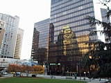 さて、最終日、お天気なかなか良さそうです。と言う事でスタンレーパークに行きます。まずは昨日買ったピザパンとコーヒーとジュース、りんご、バナナで朝ご飯(笑)本当はレストランでパンケーキとか食べたかったけどo(T^T)o 新聞にはあんまりカナダ3000の記事は出てなかった。で、今までゆっくり新聞読む暇もなかったけどちゃんとTV番組や映画館の上映スケジュールもあったのね。昨日ちゃんとこれ見てから買い物に行けばもっと時間が有効に使えたのに、バカねぇ。。って感じ(^▽^;) 「地球の歩き方」を見てスタンレーパークへの行き方をチェック。どうやらバスを乗り換えするらしい。で、バス停はどこだ?って感じなのでまたまたJTBプラザまで降りてって聞いてみた。「スタンレーパークですか…私達は歩いちゃうんですけどねぇ。。。。」…へ?歩いて行けるんですか?何分くらい?「そうですねぇ、20分くらいでしょうか?バスも乗り換えに時間掛かりますし、あんまり便利じゃないので」…じゃぁ歩いてみようかなぁ?「何しに行くんですか?」…サイクリングしたいと思って「…サイクリングですか。。。。さ、寒いかもしれませんけどぉ??」…(=◇=;) ギクッでもお天気が良いので「そうですね、気持ち良いかもしれませんね。地図はお持ちですよね?では、Georgiaストリートはつまらないのでロブソンストリートをずっと歩いてデンマンまで来たら曲るともう見えて来ますよ」…ありがとうございましたぁ〜 ってな感じでした。