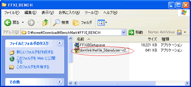 6.ソフトを選択できる画面が出るので「FFXiBench.exe」(FFXIのベンチマークソフト)を選択します。(おそらくここにFFXIのソフトを指定すれば動作するようになるものと思われます。)