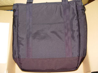 ビニールから取り出すと、もう何かお分かりですね。 そう、「JetSetBag」という名前のトートバッグなんです。 写真ではちょっと分かりづらいかも知れませんが、結構大きなバッグなんです。 |