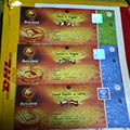 で、これがチケット。おしゃれです。中心に対戦する国名とお互いの国旗のイラストがかかれています。入場するゲートの場所ごとに半券の色が分けられています。あと、左下の競技場のイラストは、当たり前ですが、競技場ごとに違ってます。ああ、これでは行かないチケットも欲しくなってしまうではないですか。そうそう、コピー対策でホログラムもばっちりでした。 |